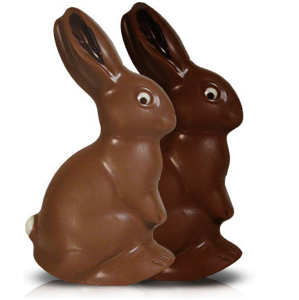 One Chocolate Easter bunny, milk or dark, with or without foil-wrapped chocolate eggs filled with ganache, praliné, caramel, nougatine, and or gianduja.